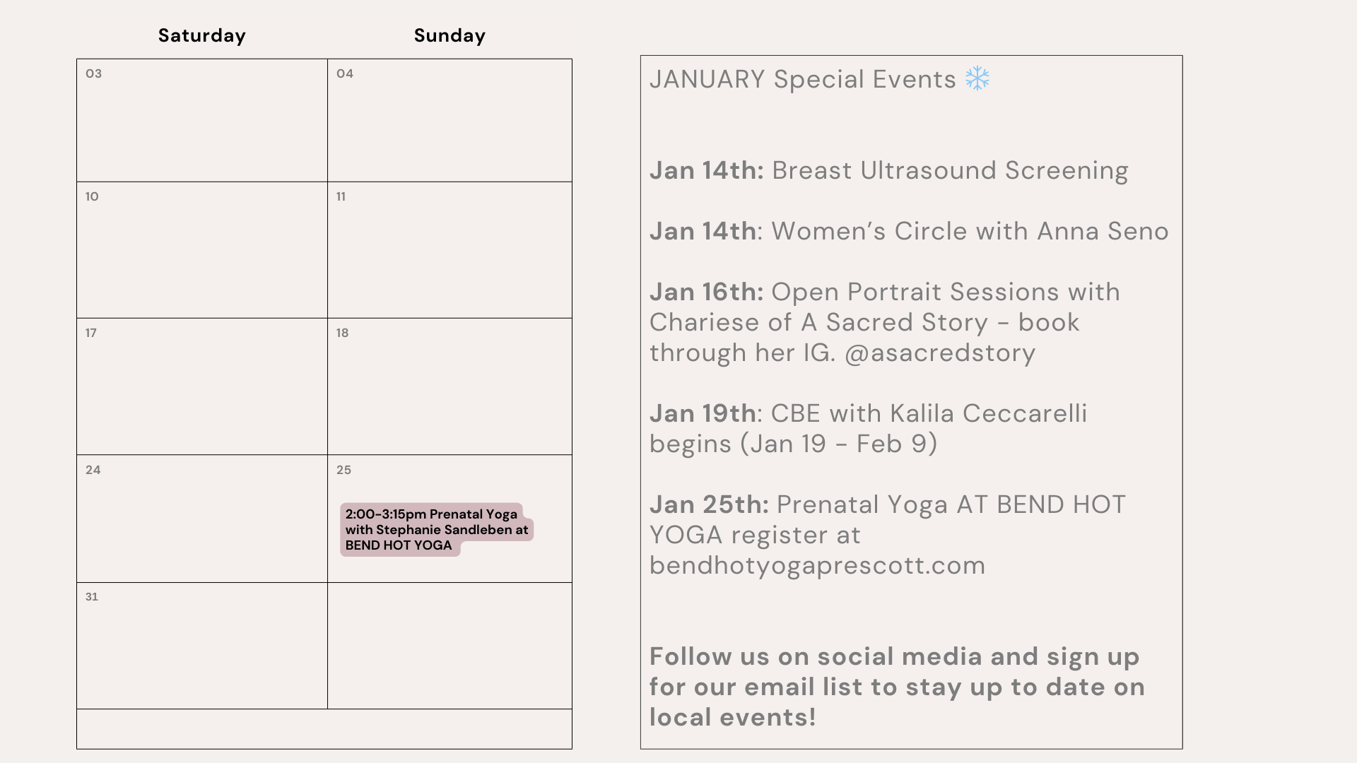 Regular Monthly Event Schedule: January